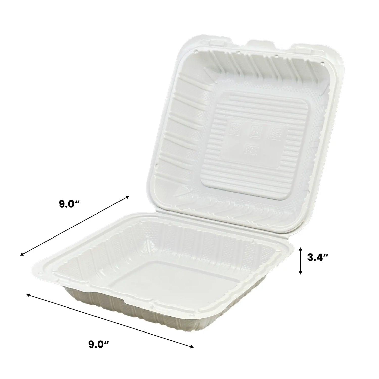 [150ct] 9" x 9" Mineral Filled PP Hinged Containers | White